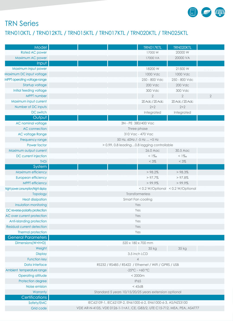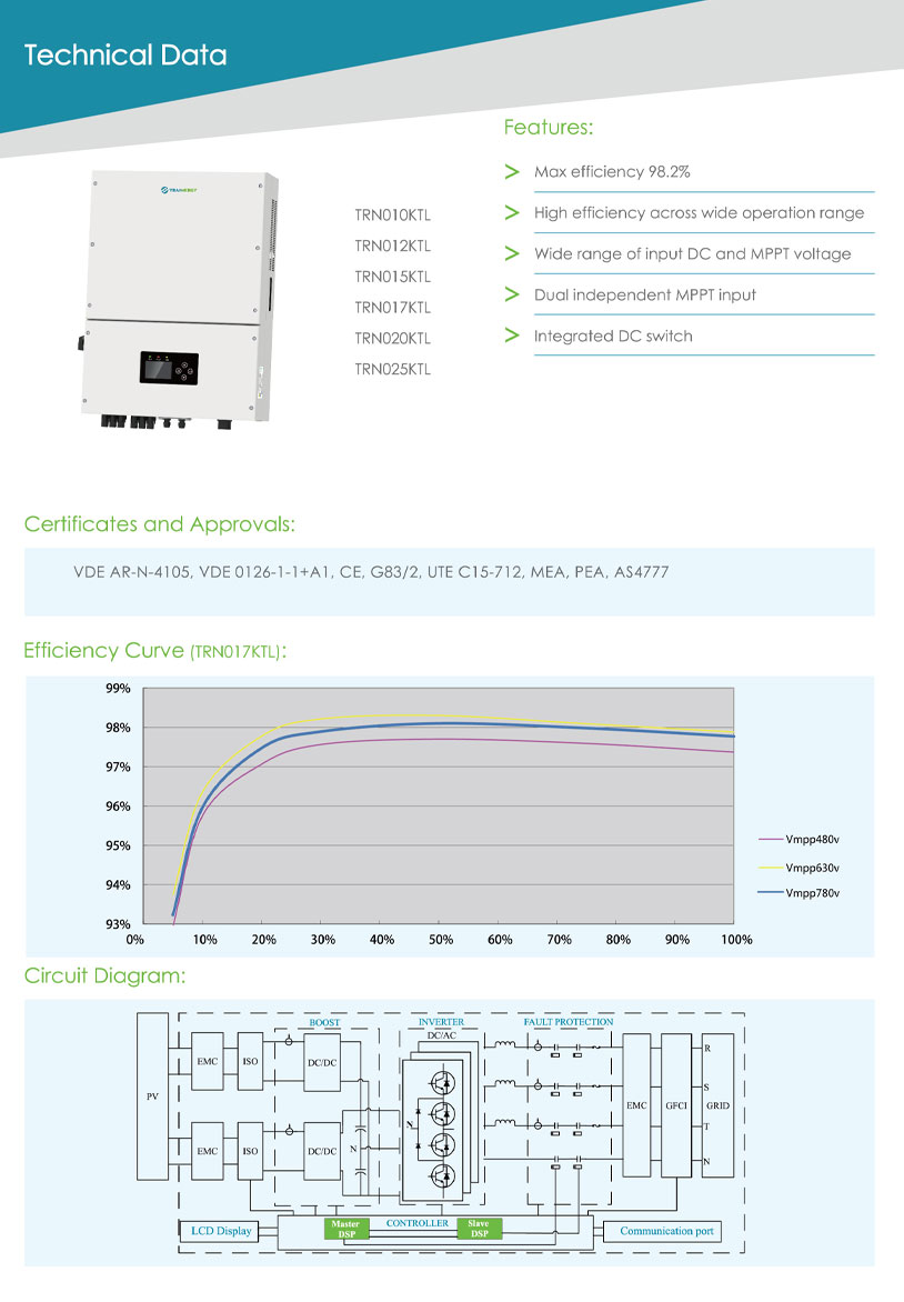 TRN017KTL Solar Grid Connected Inverter 17KW 3 Phase